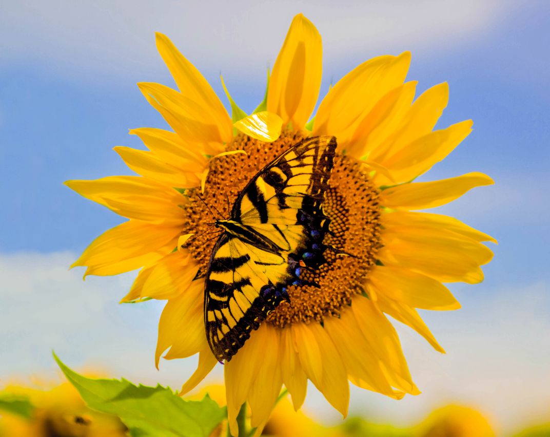 I was driving down a rural road when I came across a sunflower field. This little guy decide to land on the flower I had been focusing on.