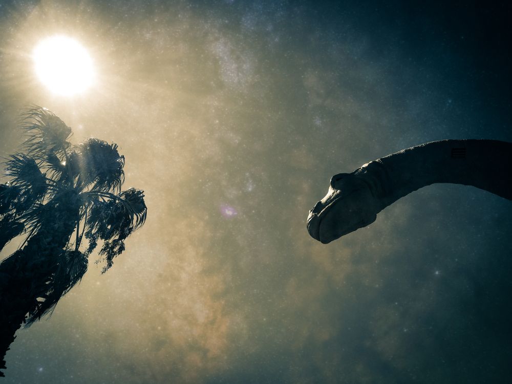 On the way out to Palm Springs along the 10 freeway is Cabazon, California, famous for the outlet stores and Morongo Casino. But near a fast food stop is the Cabazon Dinosaurs. This image is part on my "Palm Trees" photo series entire shot using an iPhone and then later manipulated using various photograph apps to achieve the look.
