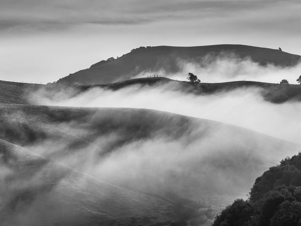 I had seen a photo of the winter fog on this particular road, so I got up early and drove before dawn several hours with a friend. The central Valley of California gets "tule" fog in the winter, distinct from coastal fog in the summer.