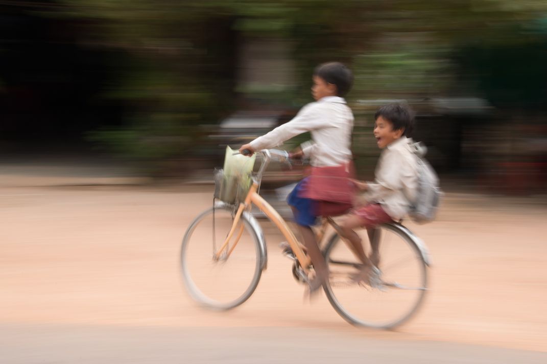 Cambodian boys were among a large group of children heading home after the normal schooldays - but these seemed especially gleeful.