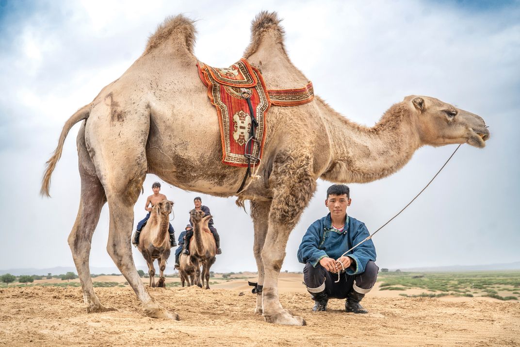 Portrait of a Camel herder (Mongolia). There are more than 250,000 camels in Mongolia, most of them located in South Gobi, Middle Gobi, Gobi-Altai and Bayankhongor provinces. Its wool coat, which is shed in the summer, acts as an insulator in the winter. An adult male camel can give up to 18 kg of wool per year. Camel is almost an exclusive means of transportation across the desert and vast steppe. Unlike other livestock, a camel can continuously travel for 30 days without drinking a drop of water.