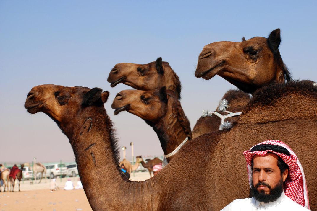 Camels with their master