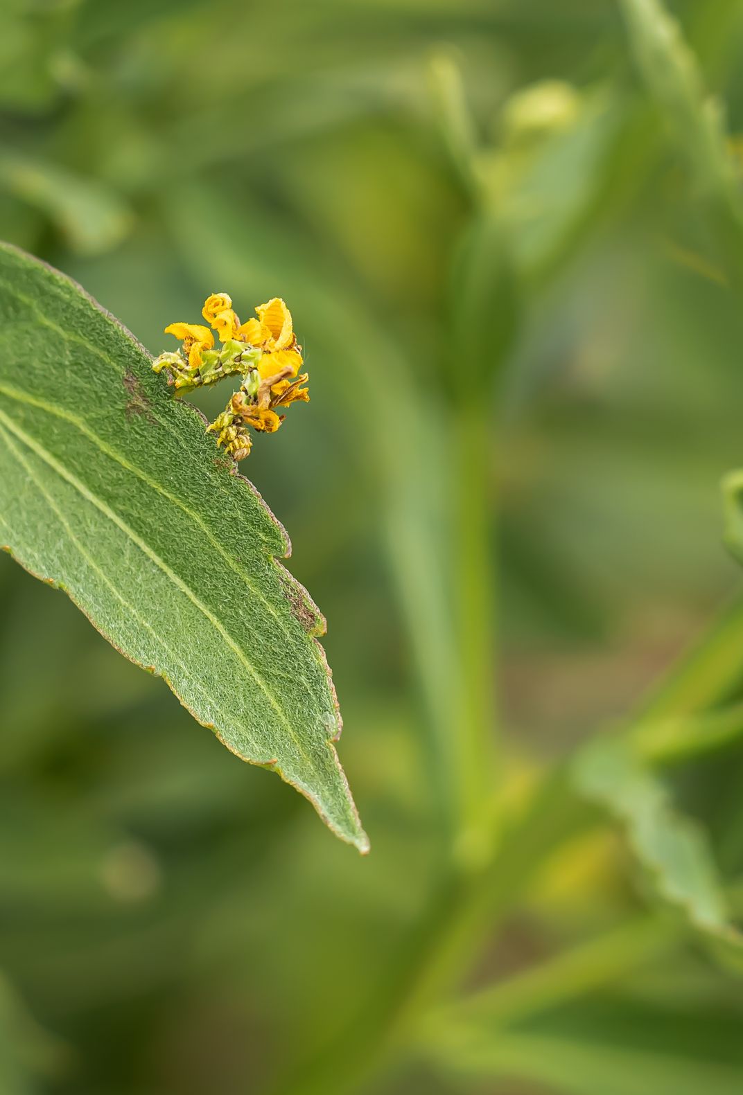 I was walking around a pollinator garden when I saw what looked like a dead flower petal crawling down a leaf. I looked more closely and realized it wasn’t a flower petal at all but a living thing! These are called camouflage loopers - they are caterpillars that disguise themselves in the debris of whatever they are on. They are common but hard to find due to their excellent ability to camouflage!