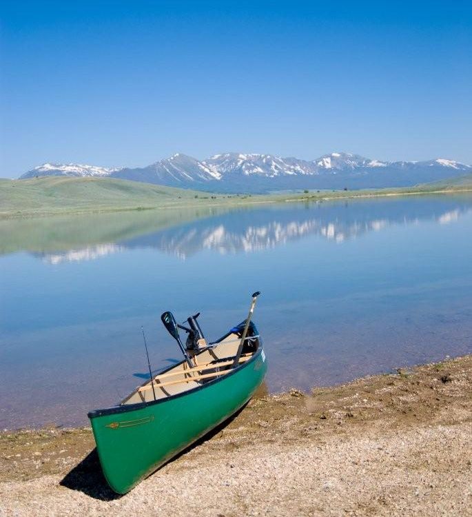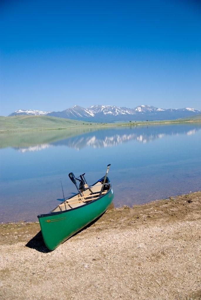 Canoe waiting to explore the mountain water