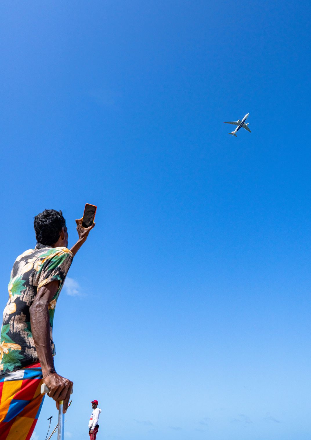 On the day SriLankan Airlines welcomed its Airbus A330-200 (4R-ALT), the aircraft flew at an altitude of about 1,500 feet, giving the public a closer view of its arrival. An old man with crutches lifted his hand toward the sky, holding a mobile phone to photograph the passing airplane. One hand gripped the crutches, helping him stay balanced, while the other held the phone steadily, capturing the moment. His posture showed determination, courage, and independence, reminding us that physical challenges cannot stop the human spirit from pursuing curiosity and creativity. Around him, life continued, and in the distance, another man appeared very small. Although far away, his position in the frame made it seem as if he was observing the old man’s effort, adding depth and subtle storytelling to the photograph. The combination of the crutches, the mobile phone, and his focused gaze created a strong sense of resilience. This image is more than a man photographing an airplane; it is a story of hope, determination, and the quiet power of the human spirit. It reminds us that inclusion begins when we recognize and value every individual’s effort and creativity.