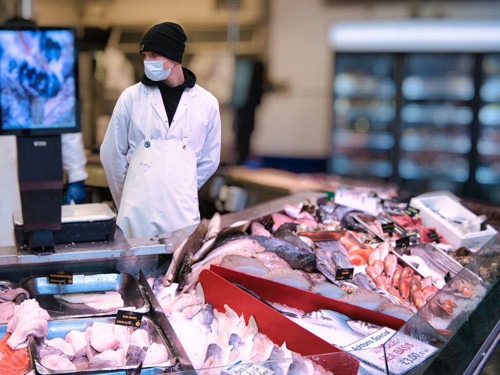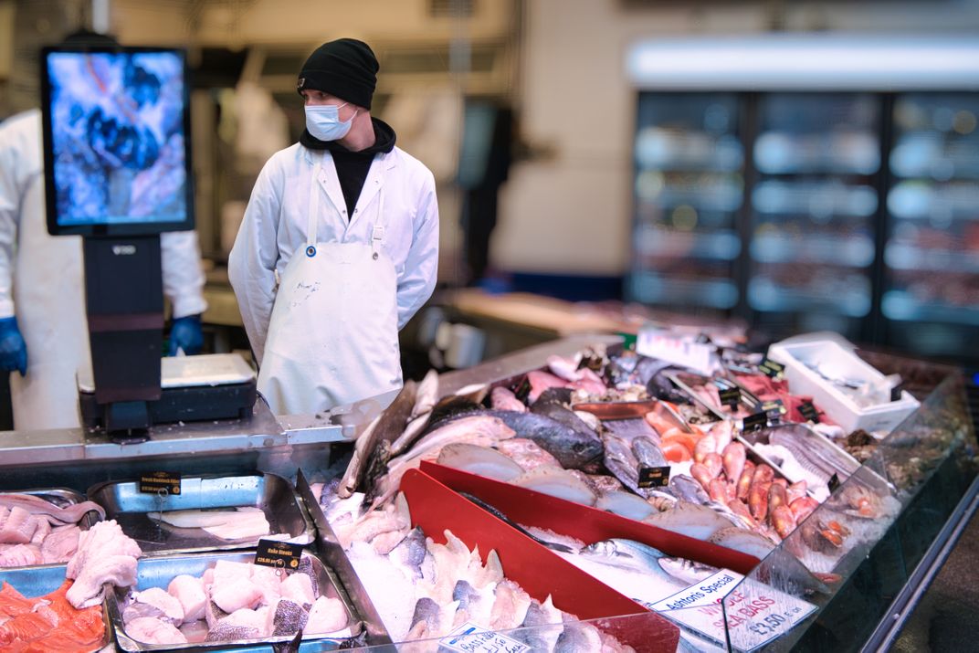 Cardiff Cetral Market - Fish Salesman. Panasonic Lumix FZ2000.