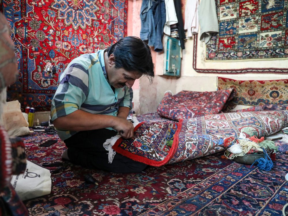 One of the famous handicrafts of Iran is carpets. People have been weaving beautiful carpets for a long time. Just like this gentleman is doing the same art.