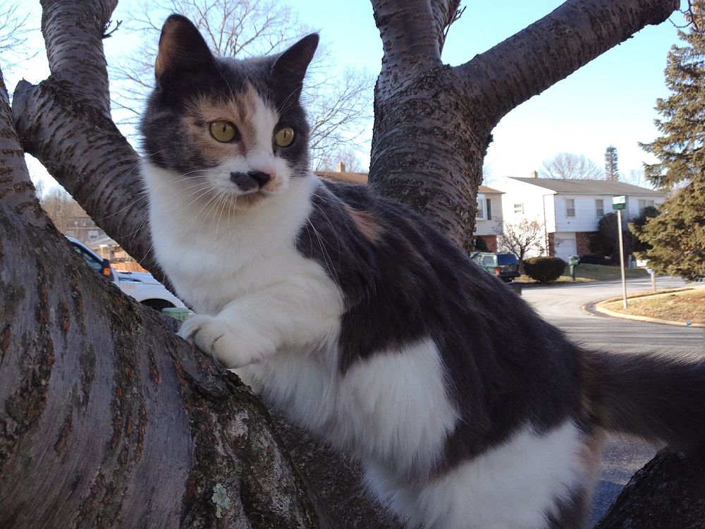 My cat when she decided to go up a tree in my front yard.