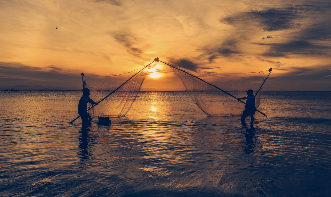 Push netting fish at dawn, in Go Cong beach, Viet Nam