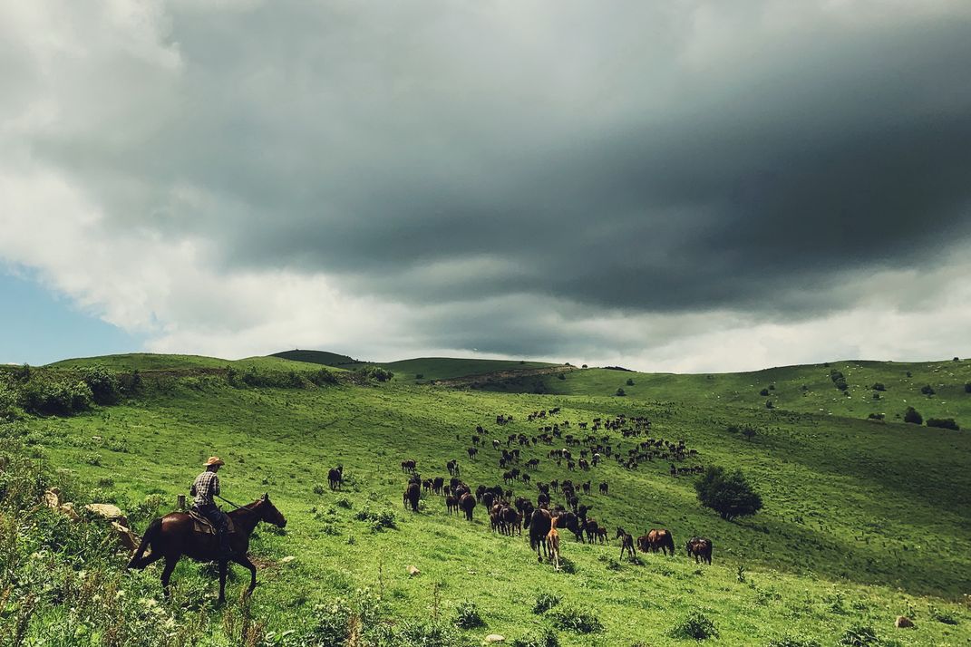Caucasian shepherds drive cattle in the Dzhily-Suu tract