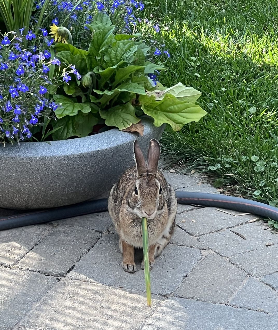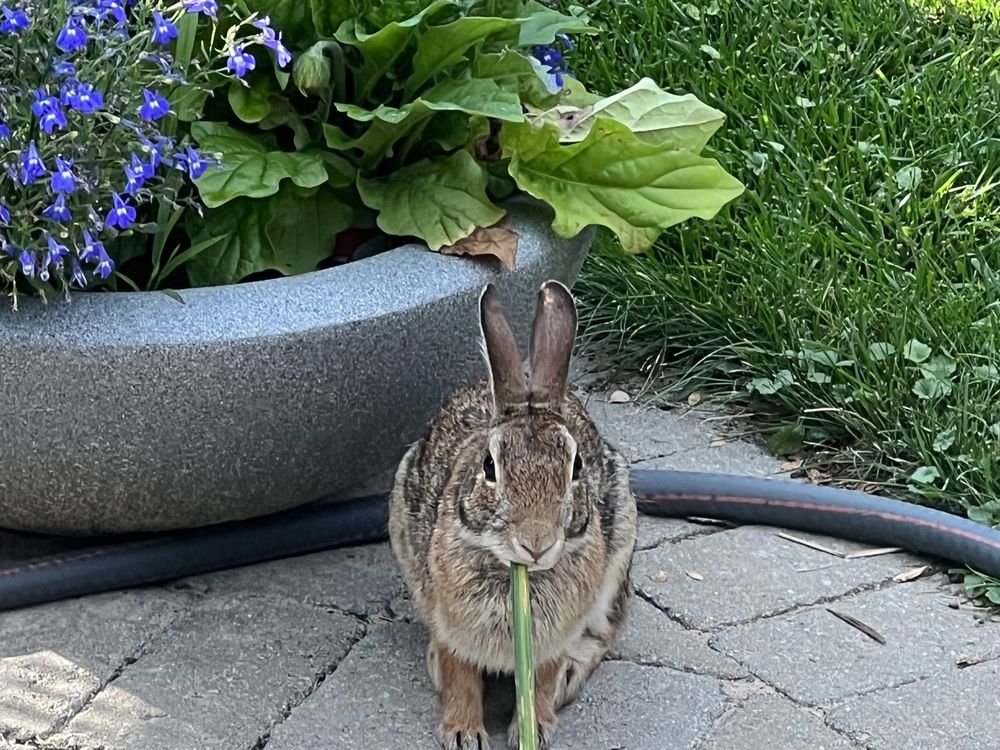 I looked out my window one evening around dinner time and saw a rabbit nibbling on a blade of ornamental grass that he had stolen from my flower bed. It was a precious moment.