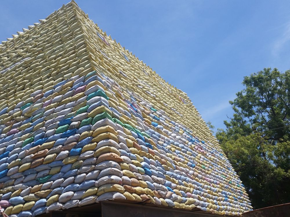This photo shows how some sites can trick the simple eye. Thinking it was just some random structure, I first looked over it. Then, thinking back again, this pyramid was more than just the shape. Cement bags, often seen in a developing country like India, were stacked in this shape in order to save space.