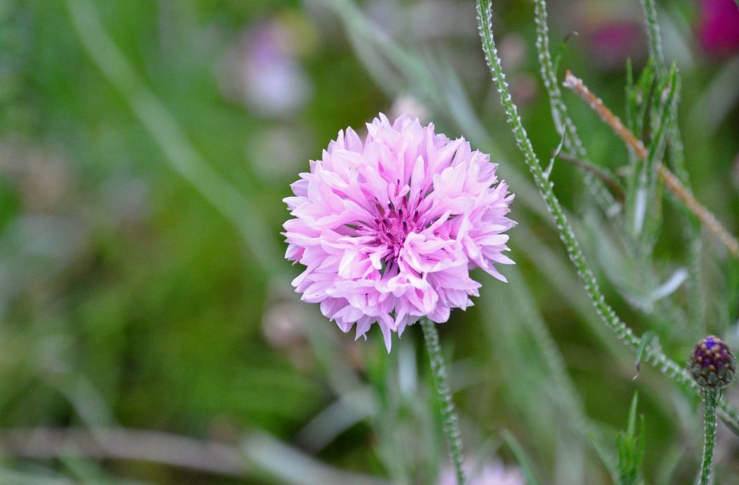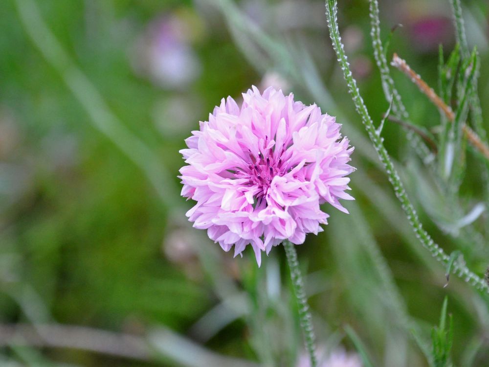 A beautiful pink Centaurea Cyanus, otherwise known as a Cornflower, growing amongst the wildflowers at Gibside.