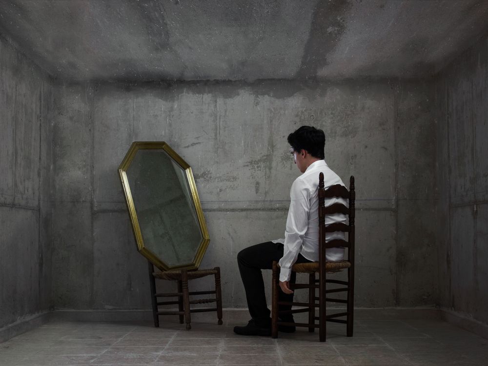 The photo is a self-portrait of me in a tiny room staring at a mirror, the title pretty much explains the concept; I wanted to portray the struggle of trying to understand and come to terms with what you are deep inside, which is, in my opinion, an on-going process that never ends.