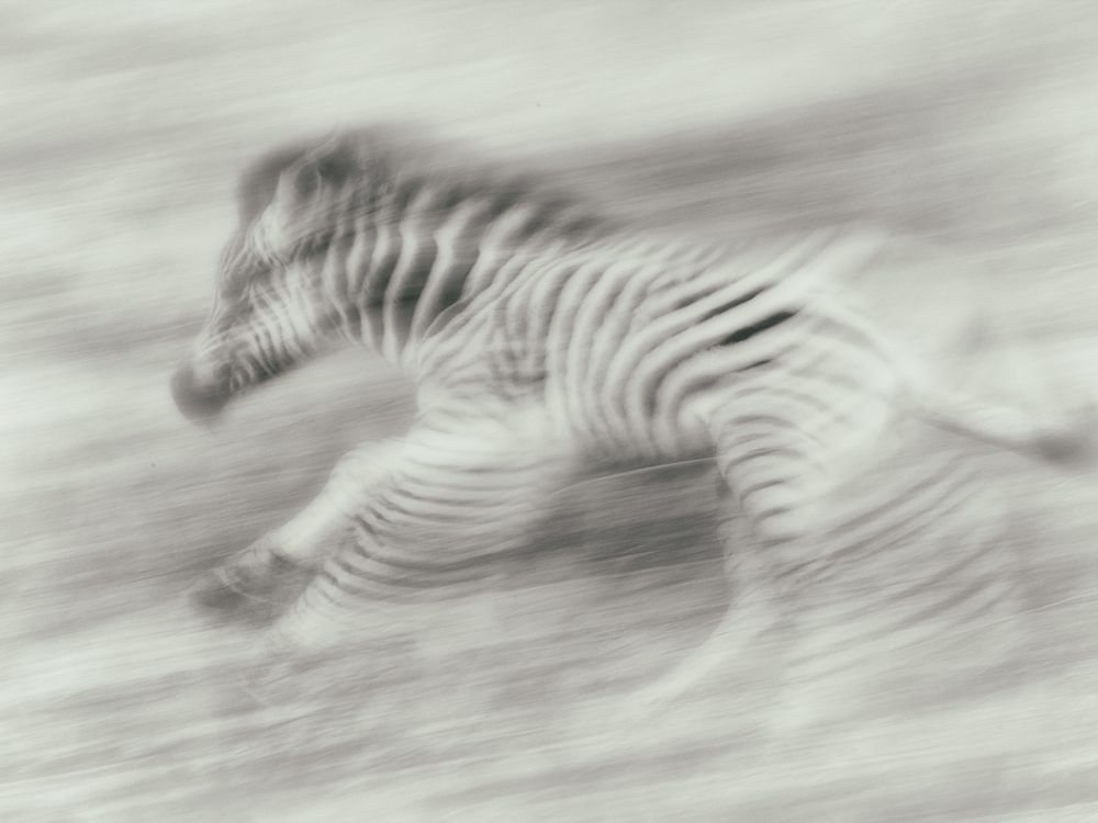A few days old Zebra foal running around as fast as he could, under the watchful eye of his mother and the other members of the herd.