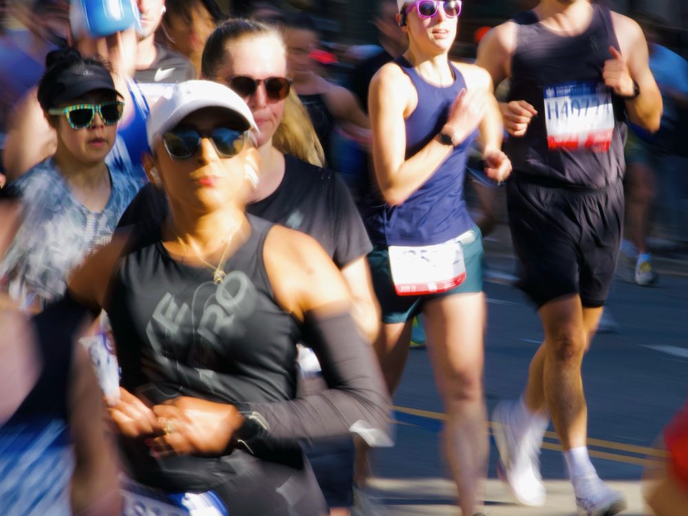 I was a spectator cheering on some friends running the Chicago Marathon. I had my camera with me and decided to use a slow shutter and intentional camera movement to convey and sense of movement in the image.