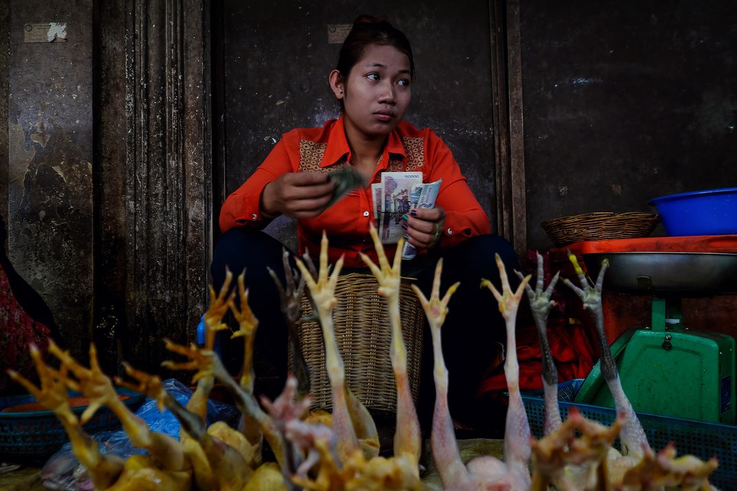 Chicken vender in Siem Reap market