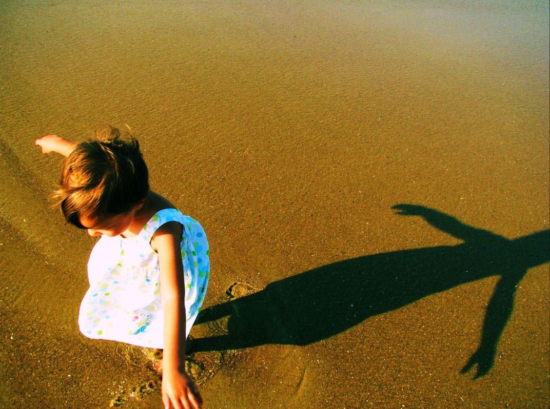 child dancing on beach