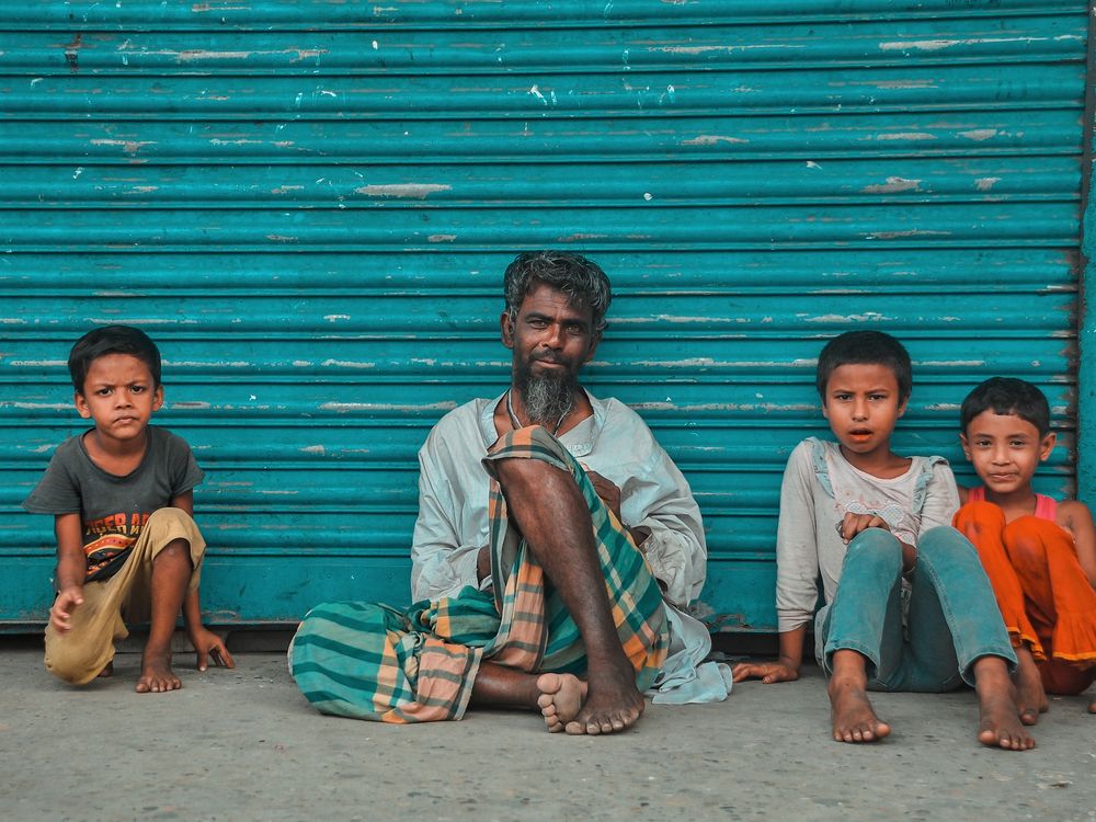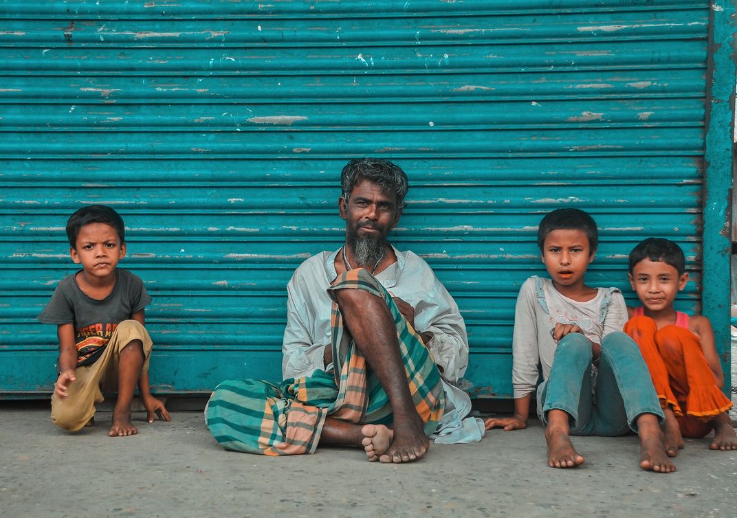 Little children sitting with their father.They are relaxing and talking to each other at the end of their busy day.