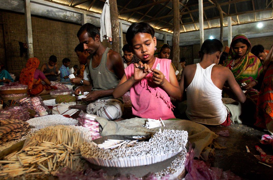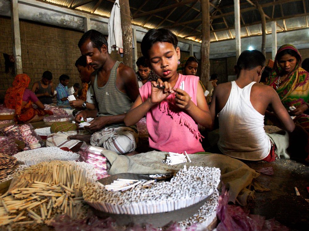 Children work at bidi, shredded tobacco factory at Haragach. Rangpur, Bangladesh. March 2010.