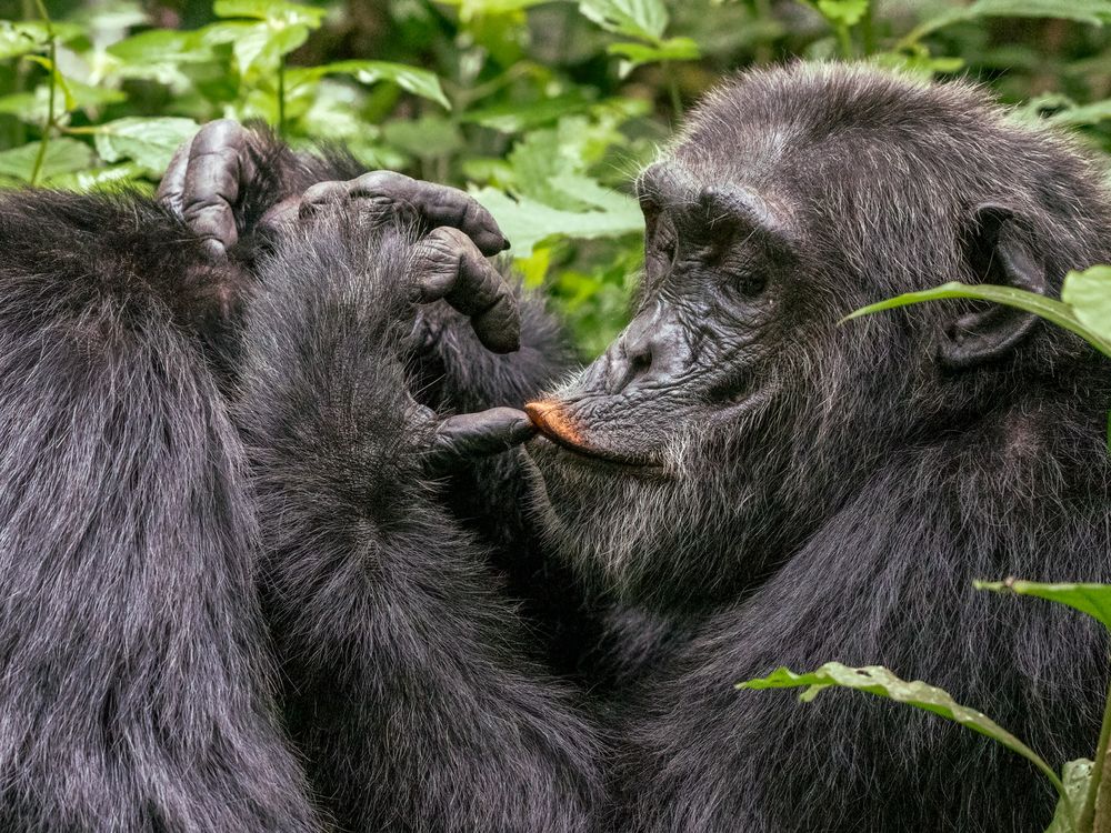 Chimpanzee Having Eaten Some Very Pink Fruit!