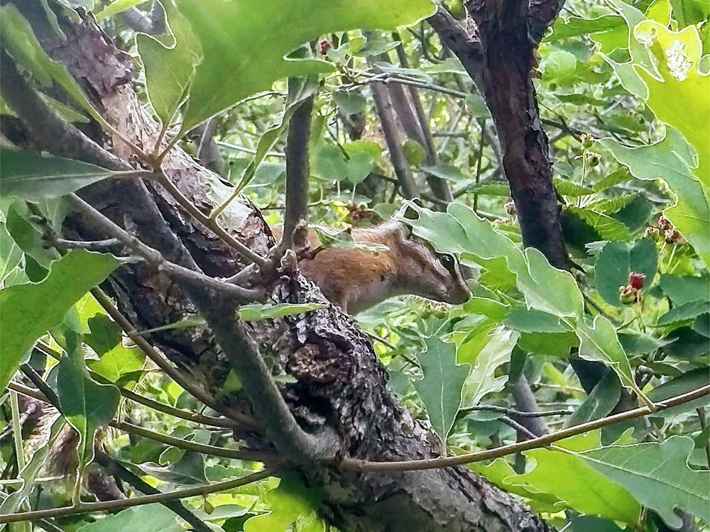 I was hiking back from Stewart's Falls in Sundance, UT and spotted this little chipmunk climbing around in a tree. It looks like he's going to eat that berry in front of him but he was just posing for a second.