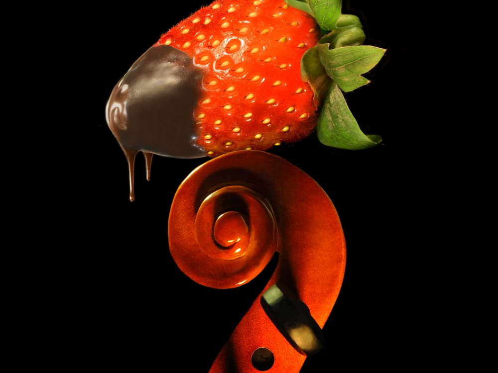 For the Assignment of Fruit Project, capture the New Concept of Chocolate Strawberry on a Violin head Composition