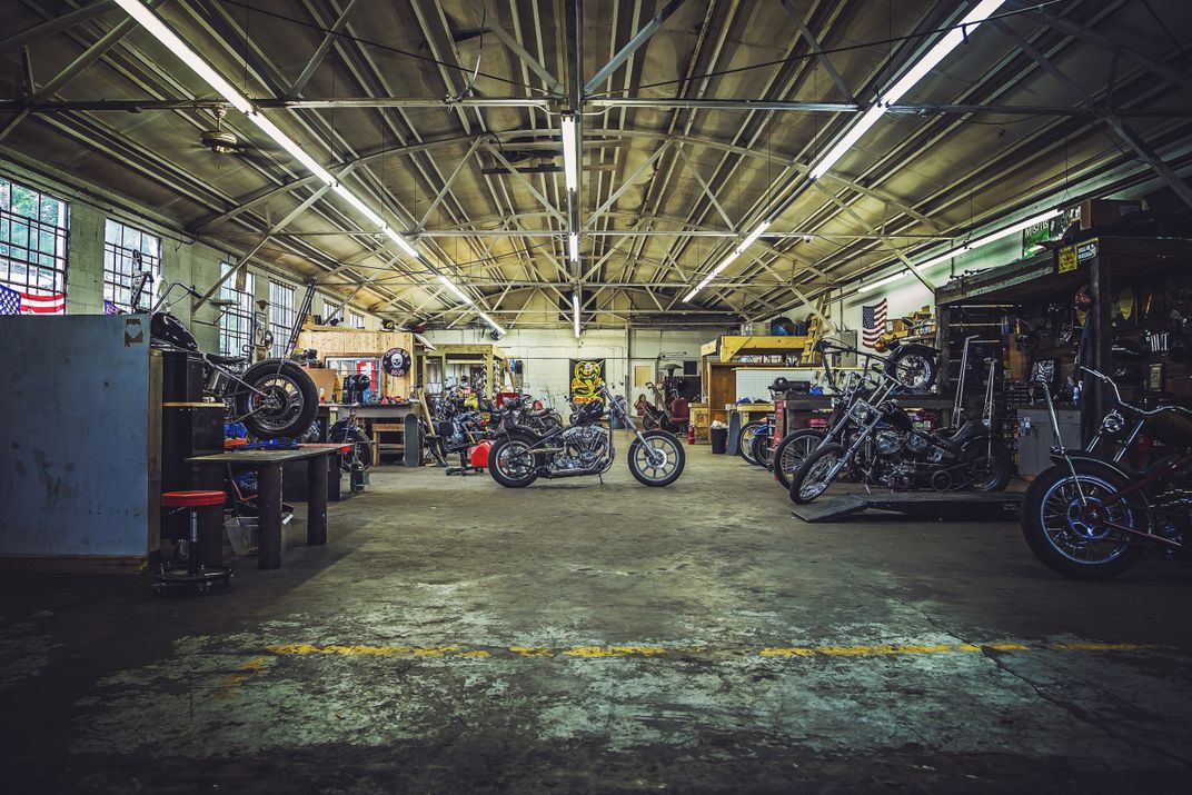 I was downtown Birmingham, Alabama taking pictures of primarily bikes, in preparation for a shoot I was trying to put together. Ran across a guy with a pretty interesting Harley Davidson Dyna. He asked me if I had ever heard of a place called "The Dojo," Intrigued, I made my down there and have been back several times to shoot, And I'm pretty sure I'll carry on like that for some time to come. This shot is more or less an overview of the entire garage.