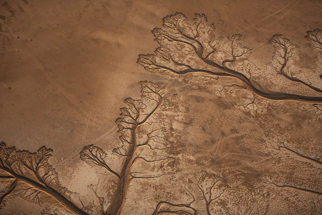 As the sun rises over the Colorado River Delta, its light unveils a delicate network of dry channels carved into the desert. Once a vibrant waterway, the delta now tells the story of a river’s gentle retreat, leaving behind hauntingly intricate beauty.
