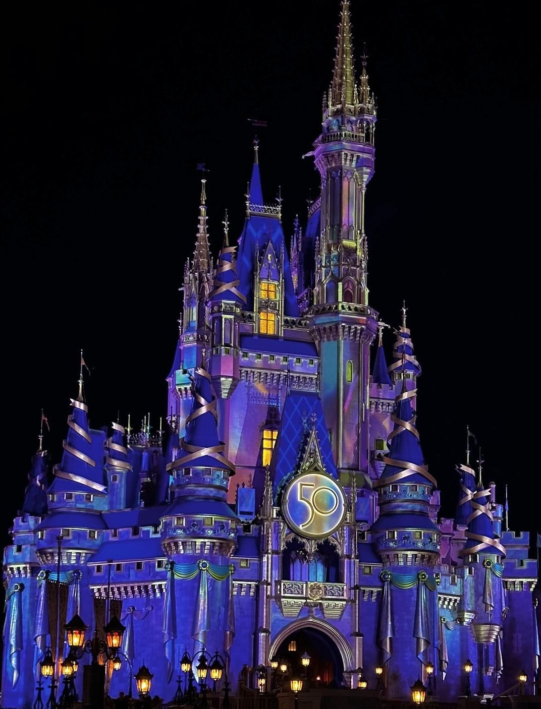 Vivid colors of Cinderella's castle during the 50th anniersary of Walt Disney World.