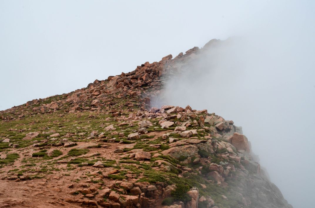 Cliff face along Pikes Peak ascent meets clouds