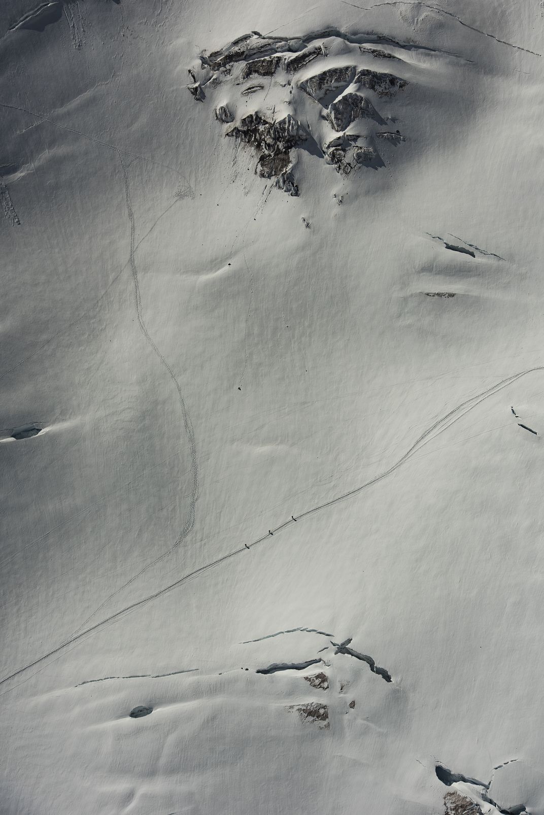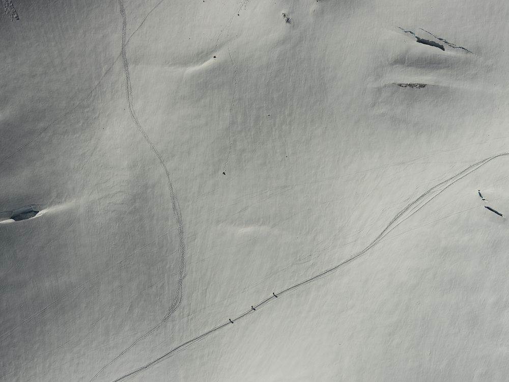 Climbers on their way up to Mt. Rainier, Washington. This aerial image was taken while flying my plane.