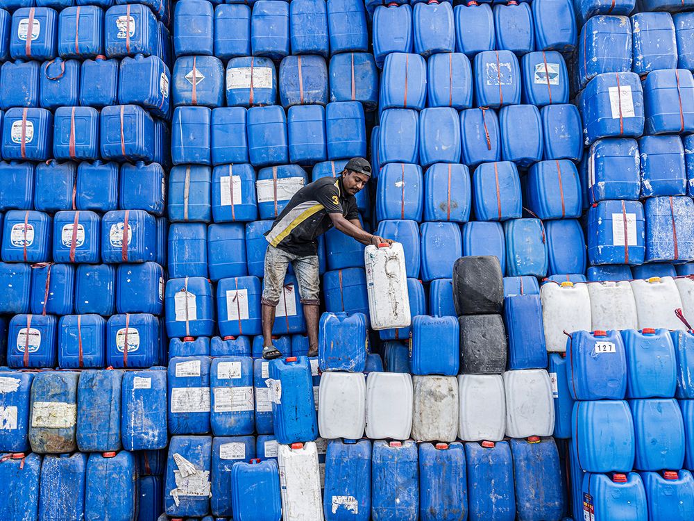 In a barrel factory at Chittagong, workers arrange towering stacks of oil drums that rise like man-made mountains. The factory produces 350–400 barrels each day, demanding relentless physical effort. Amid these precarious piles, men climb, lift, and balance heavy barrels in exhausting and hazardous conditions. Yet, despite the danger, their daily wage is just 4-5 USD. These scenes reflect the stark reality of industrial labour in Bangladesh, where resilience, risk, and survival intertwine—human effort undervalued against the backdrop of relentless industrial growth.