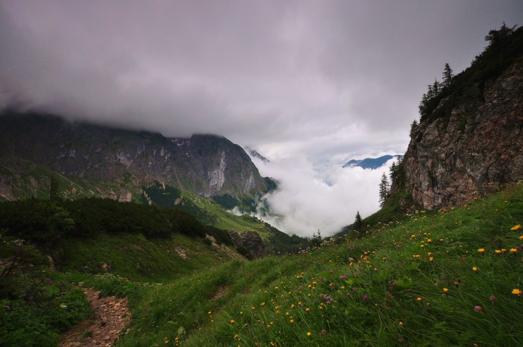 Climbing Schneibstein.