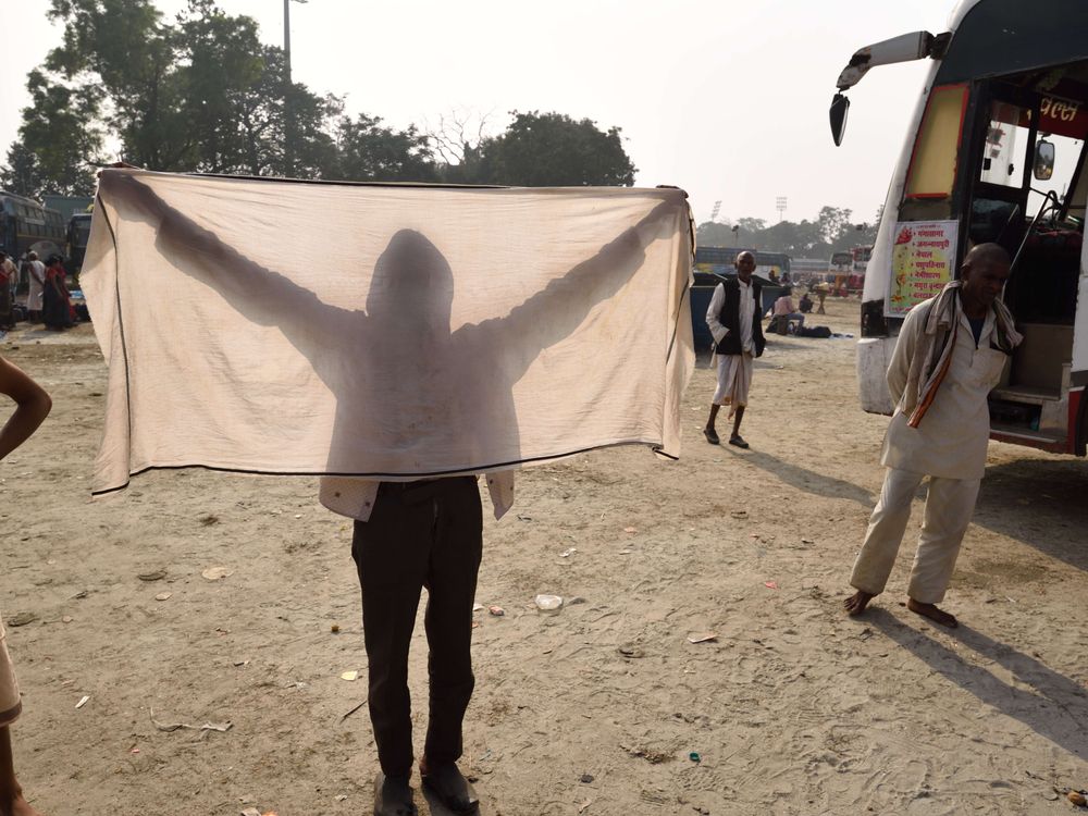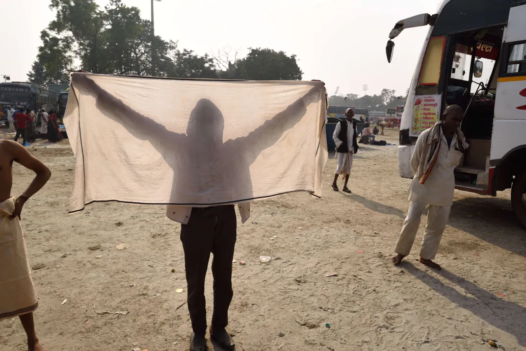 CLOTH IS DRYING IN THIS FASHION BY THE PILGRIMS FOR THE GANGA SAGAR FAIR HELD EVERY IN WEST BENGAL.