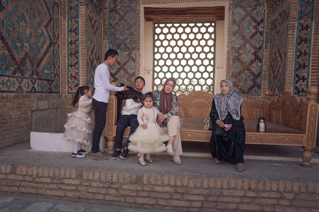 19/3/2025 Samarcanda Uzbekistan In Uzbekistan, clothing tells the story of time. In this family gathered together – three generations seated side by side – the grandmother preserves the colors and fabrics of traditional dress, the parents blend local patterns with modern cuts, while the youngest wear pieces influenced by Western fashion. A scene that reflects the revival of interest in traditional style and the ongoing dialogue between heritage and modernity.