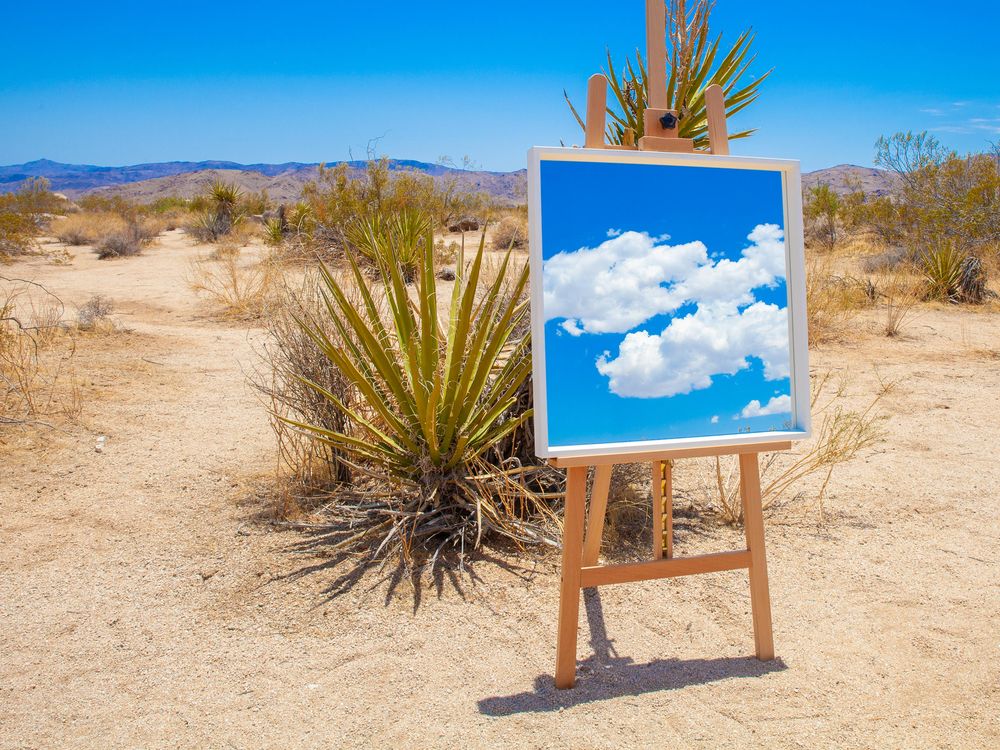 Clouds Among the Brush of Joshua Trees Reflected In a Canvas Mirror