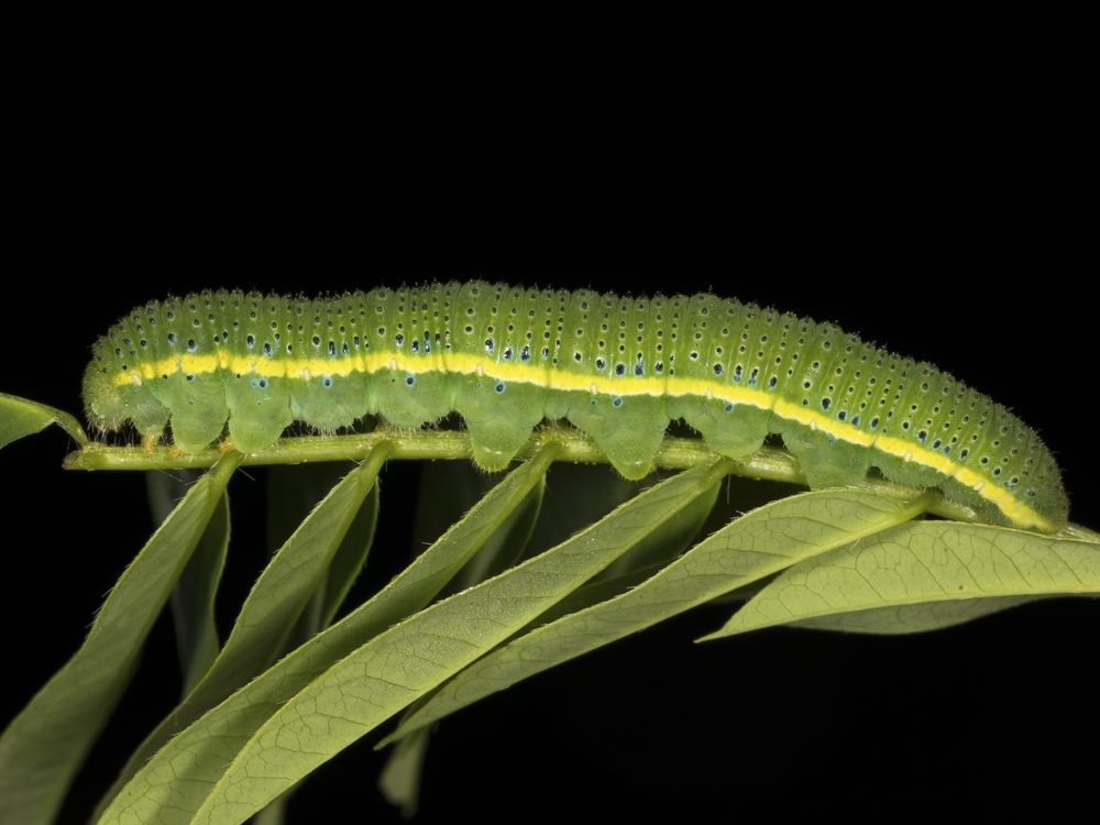 A penultimate instar Cloudless Sulphur butterfly caterpillar feeds on Wild Senna, one of its host plants. Many caterpillar species are finicky feeders, and only forage on a small suite of plants. In this case, a few members of the pea family. Caterpillars grow through a series of molts - often five - and each growth phase is called an instar. The penultimate instar is the next to last. Caterpillars often change appearance markedly between instars, and this caterpillar will look quite different in its last instar.