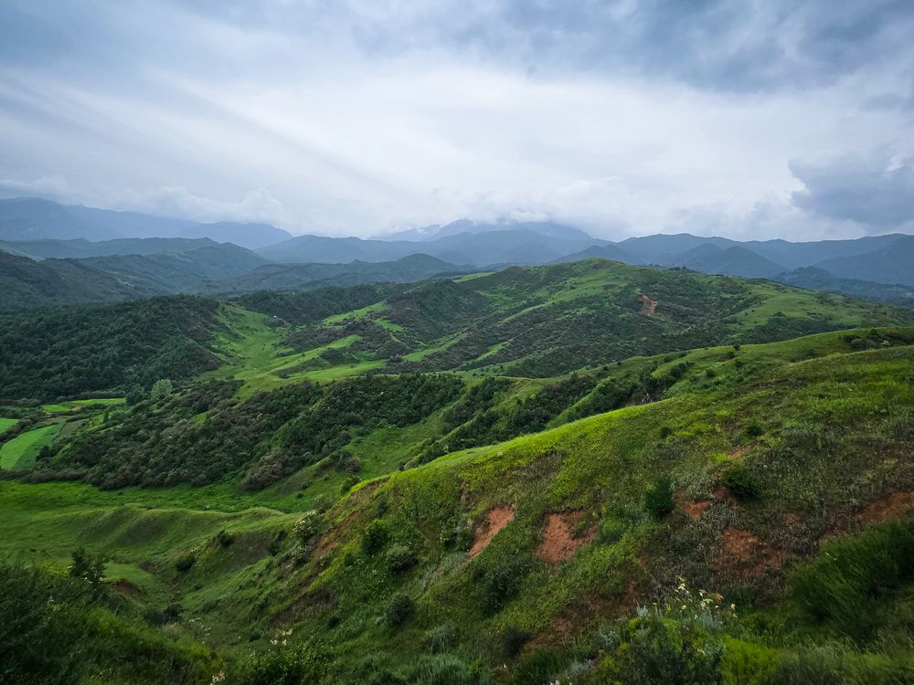 This is Gansu Province, China, with its verdant mountains and rolling hills.