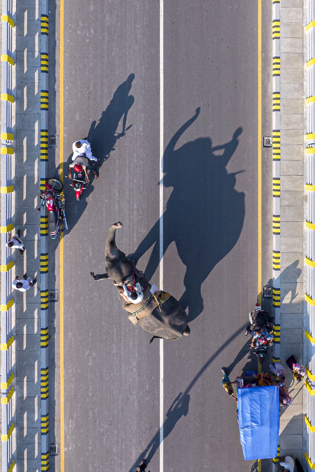 When the circus is closed, it becomes very difficult to meet the cost of feeding the elephants. Therefore, to collect money for elephant food, elephant handlers sometimes collect donations by stopping motorcycles, buses on roads with their elephants.