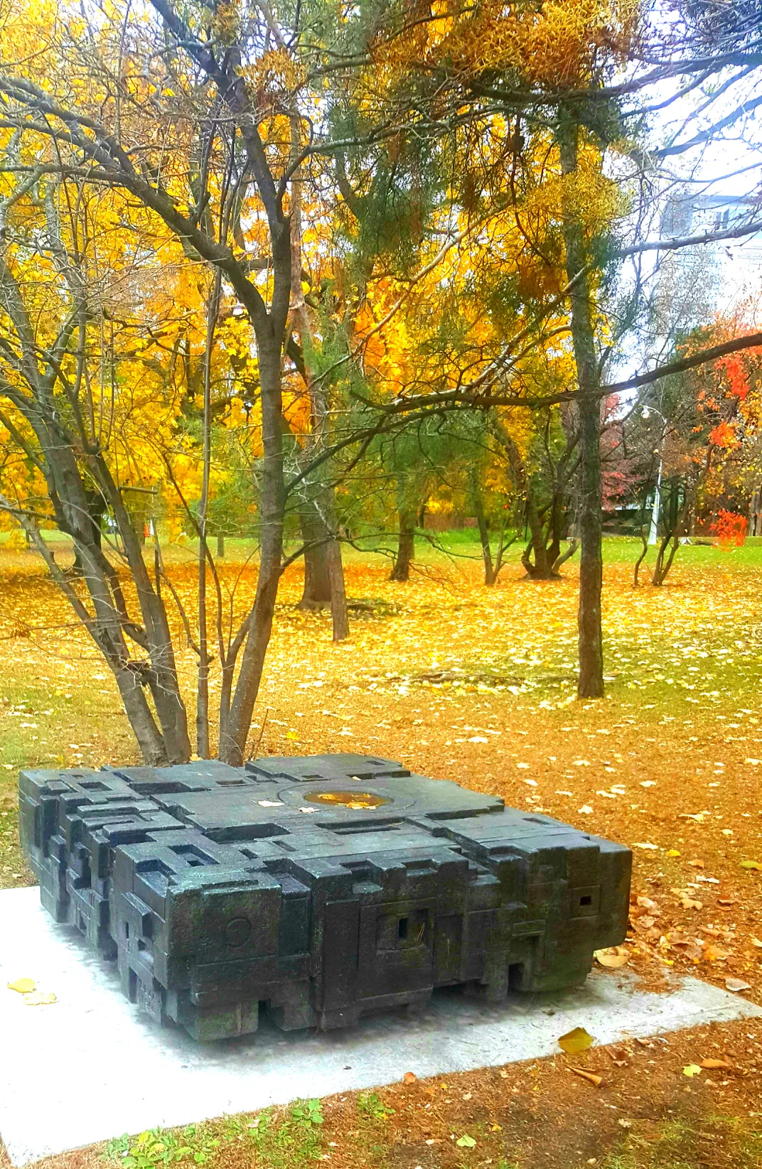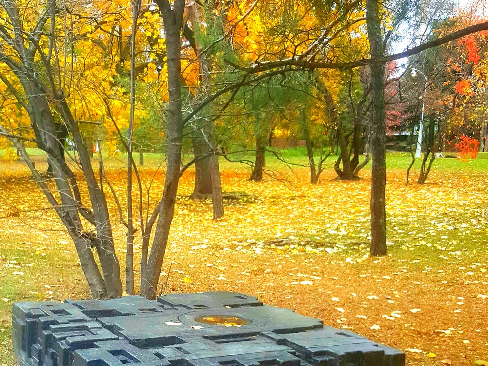 When passing near the canal as many times before somehow see that trees are shedding their golden leaves in a hurry for com ing months long deep hibernation and saw that was just near this real art piece from 1966 placed by the city "MEDITATION PIECE" by Elza Mathew. Paused for a moment to align myself with rhythm of nature as the surrounding trees were doing..