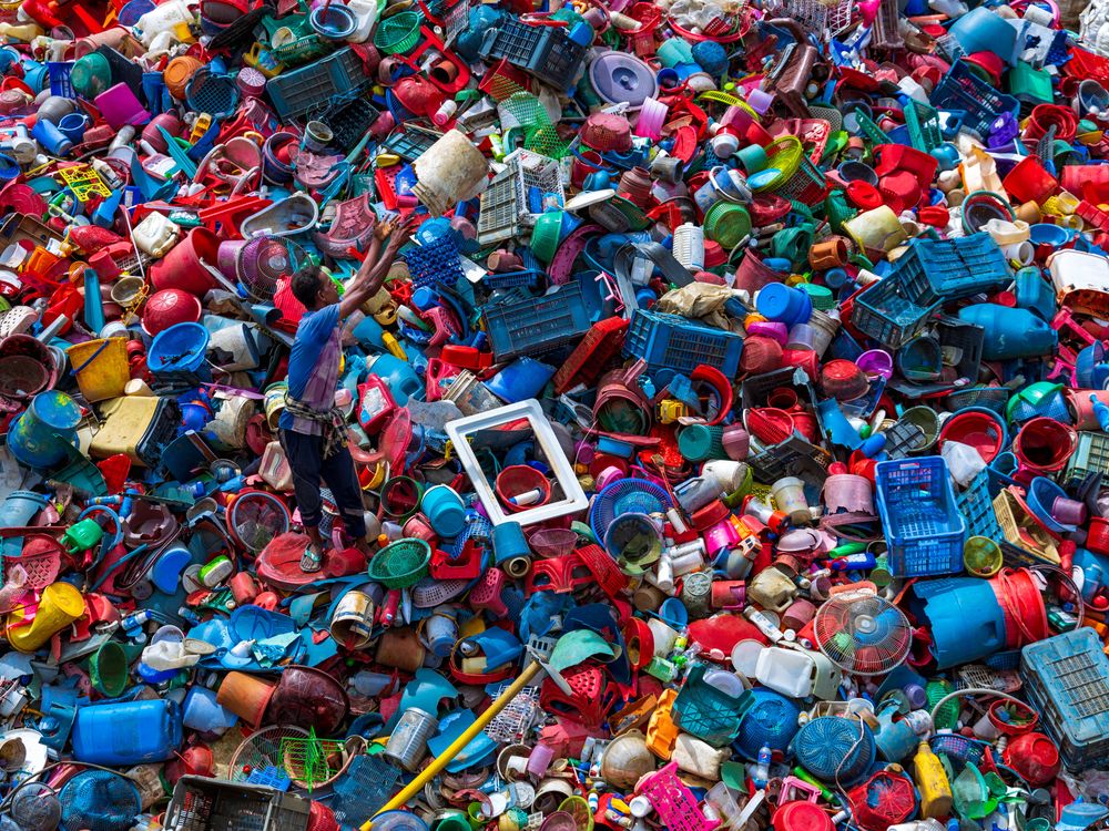 In Brahmanbaria, Bangladesh, a young man is deeply engaged in the vital task of plastic recycling. Surrounded by a vast array of discarded items—buckets, baskets, bottles, and trays—he meticulously sorts them, ensuring proper recycling and reuse. The vibrant colours of the plastic contrast with the overwhelming scale of the work, highlighting his dedication to clearing waste from the streets and promoting sustainability. It also illustrates the power of individual action in tackling environmental challenges, offering hope for a cleaner, more sustainable future.