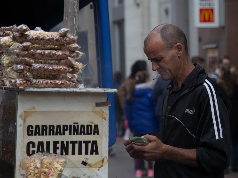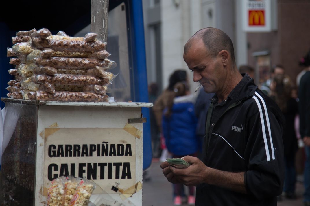 En medio del Día del Patrimonio vendedores callejeros de todo tipo de alimento y objetos se dan cita. Este personaje es un vendedor de garrapiñada, que se elabora con maní, vainilla y azucar.