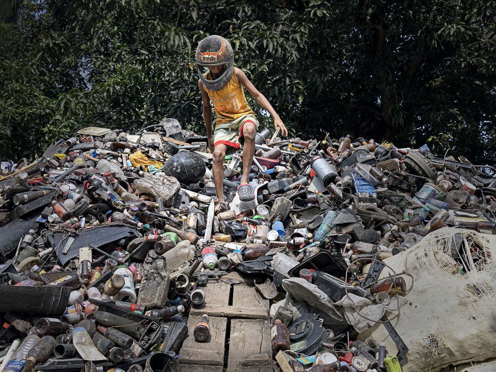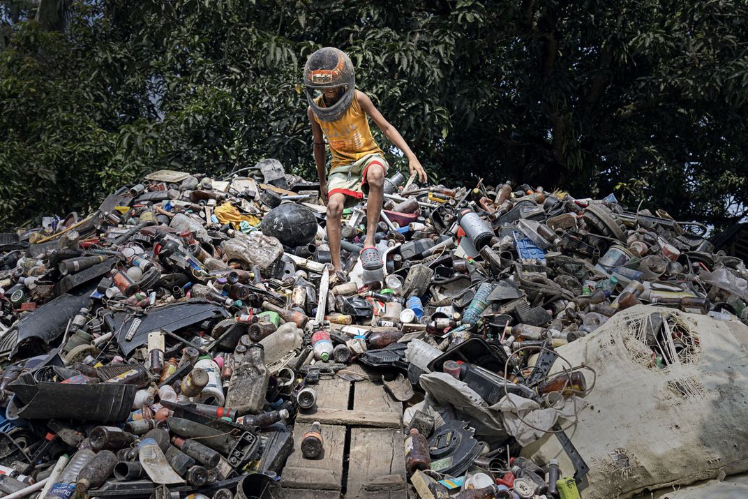 Whole planet is covering by polythene and plastic, there is no place for children. This is the part of the city where people worked to collect polythene and plastic to sell.