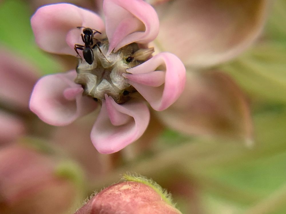 On a summer afternoon, I leaned into the world of milkweed, searching for the fragile promise of monarch eggs. Instead, I found a different story: a single ant, wandering across a blossom like an explorer on a vast continent. What feels small to us is immense to another—every petal, every stem, a universe.