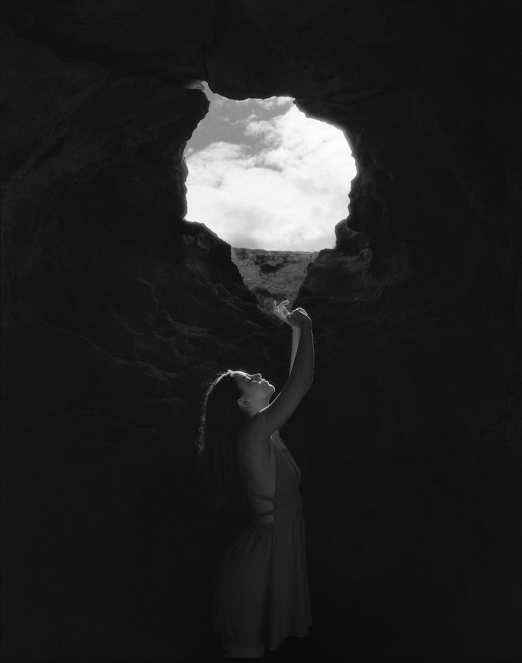 Using film photography with no digital manipulation I pose women in the landscape. By using mirrors, reflections, and forced perspective, I create an illusion in front of the lens. Although they misleadingly appear docile, it is obvious they possess a mysterious power to move the landscape at will. They change shape and scale, picking up parts of the landscape or completely transforming it.