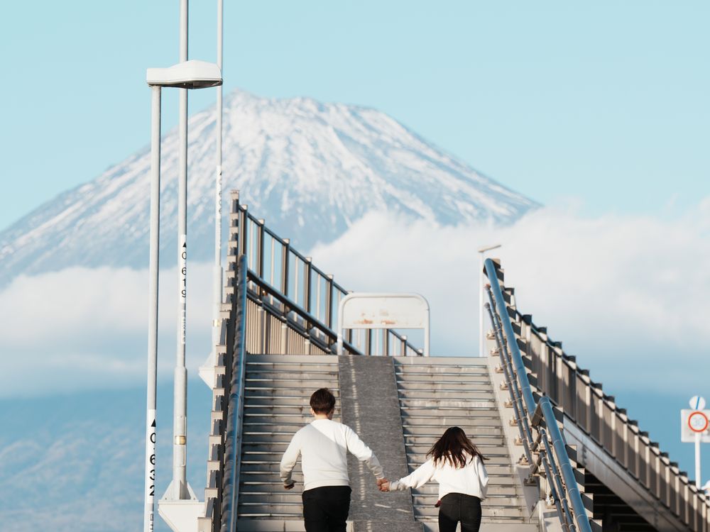 On the "Dream Bridge," Parallel lines are not meant to intersect, yet this couple is tightly connected by hand and heart as they ascend towards Mt. Fuji. A symbolic journey breaking geometry to enter the new year together.