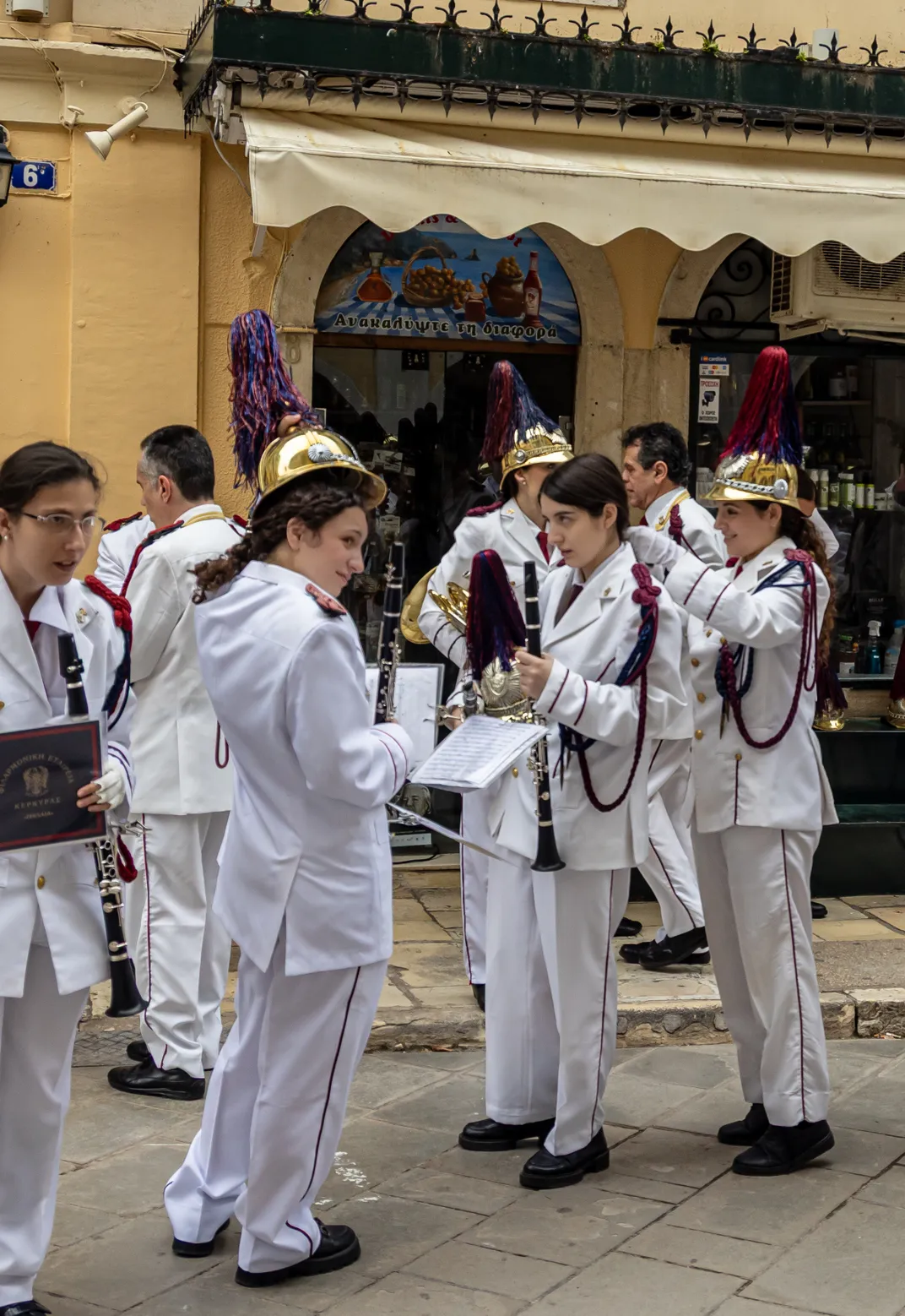 After centuries of occupation by the Ottoman Empire, Greece was reunited with its only island that did not come under Ottoman rule - Corfu. The reunification day in 1864 has been celebrated on the island ever since and actively involves many of the residents. This was a quick capture of a resident band as they prepared for the parade in downtown Corfu town.