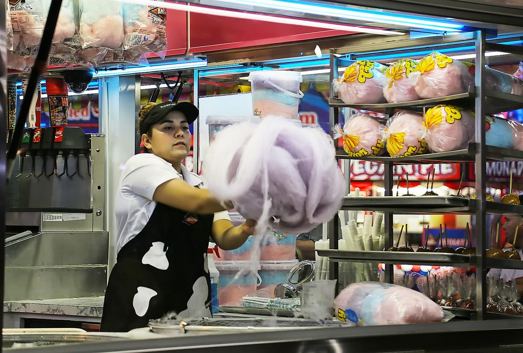 While visiting the Antelope valley Fair, we saw this attendant making cotton Candy.