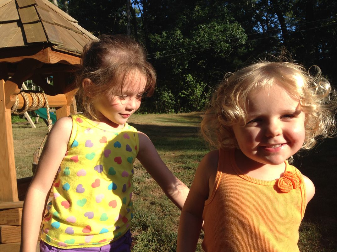 Two cousins bonding at their grandpa's house.